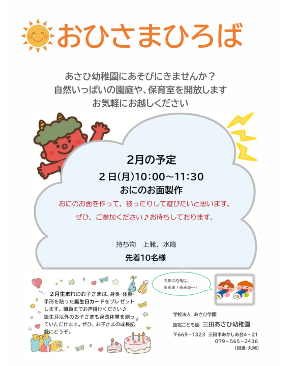 2月のおひさまひろばのご案内です。