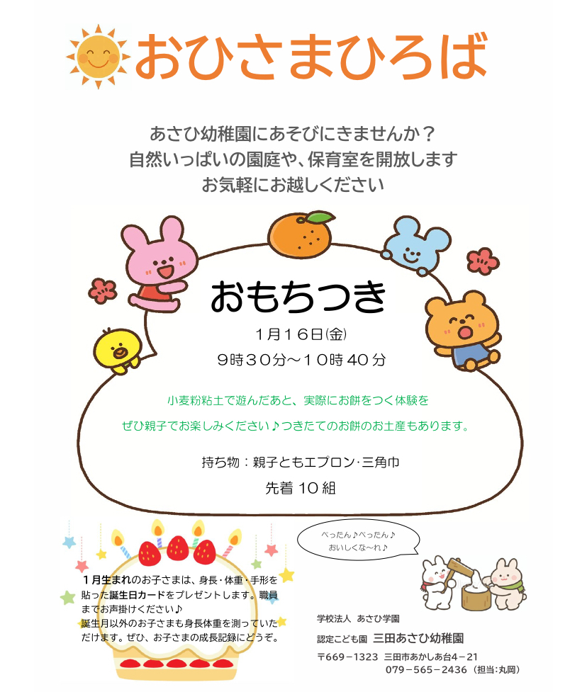 1月のおひさまひろばのご案内です。